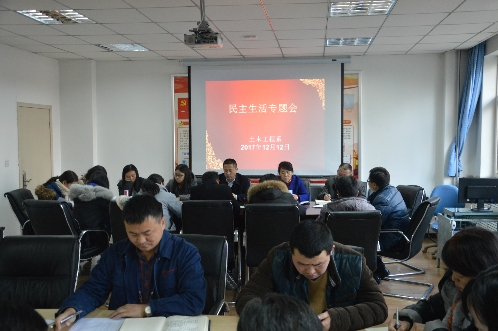 12月12日下午,土木工程系党总支在主教楼216召开了民主生活专题会。会议由党总支书记胡建琴主持,全系党员同志参加了此次会议。