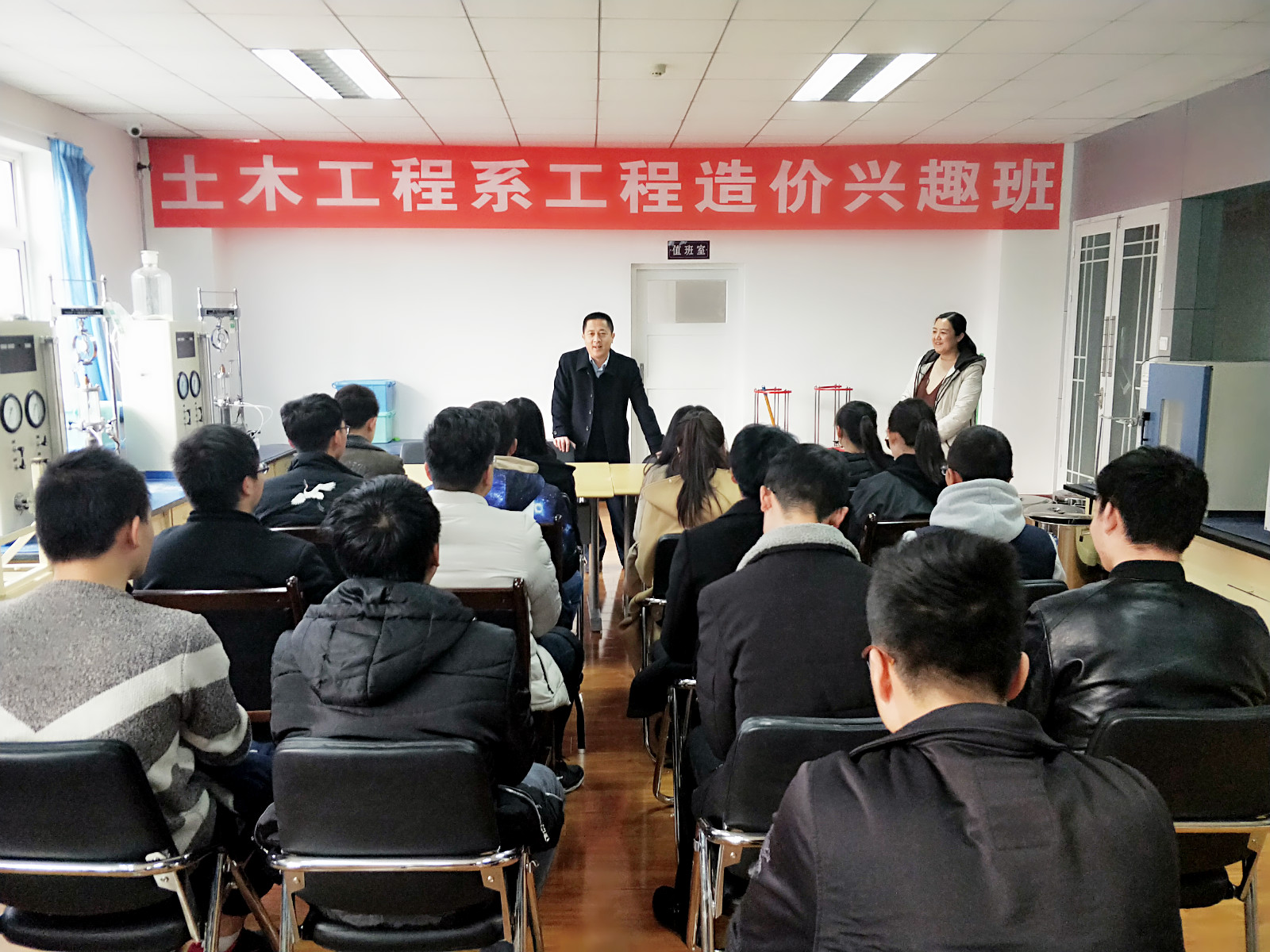 12月21日,土木工程系第三届工程造价兴趣班在实训楼二楼教室举行开班仪式。