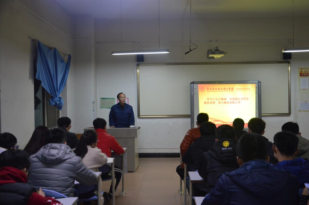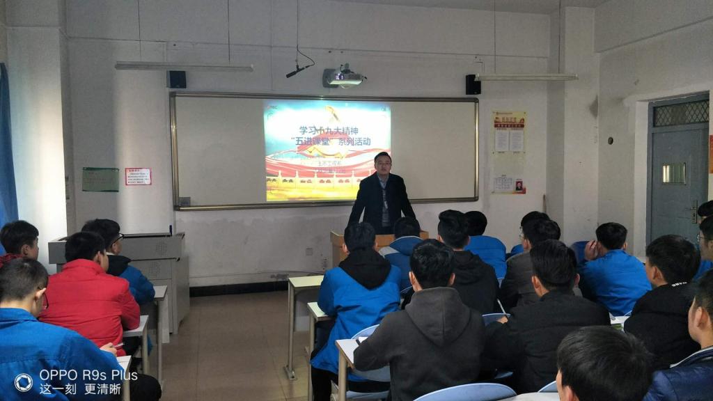 团总支书记、辅导员、班主任、及员工代表在各班级带领大家进一步学习十九大精神,讲解自己对大会精神的理解和认识,再结合自己的具体工作对员工提出新的要求。