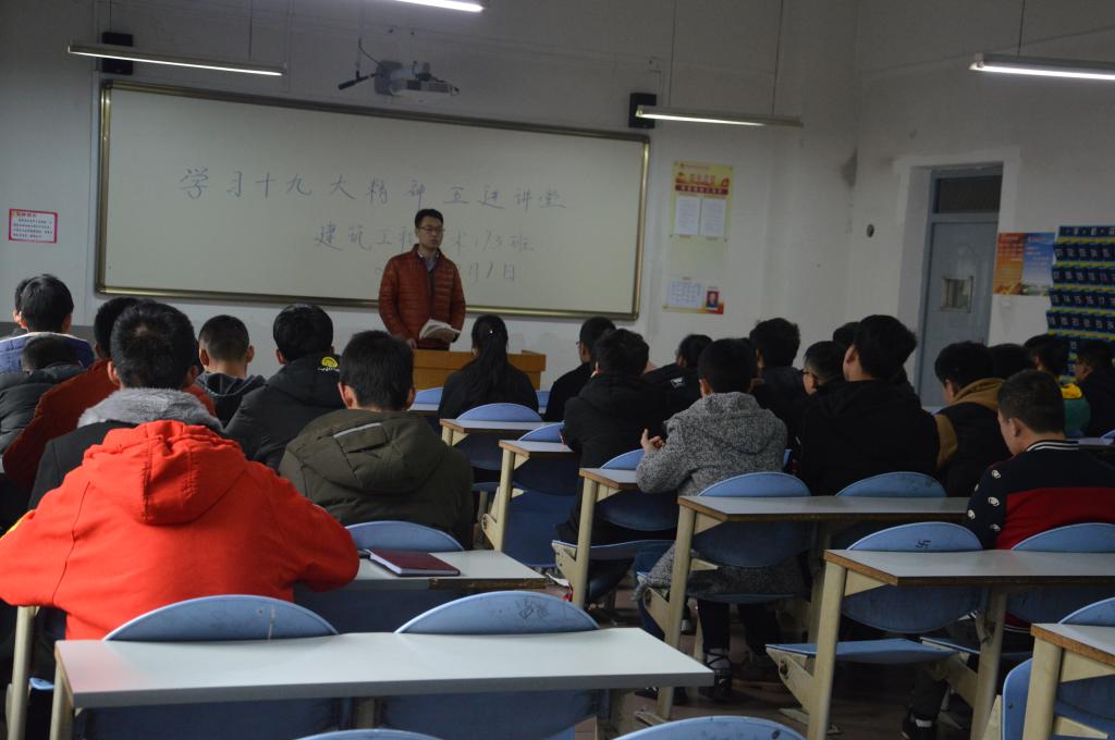 为深入贯彻十九大精神,精确掌握十九大核心,落实公司《关于开展学习贯彻党的十九大精神“五进讲堂”系列教育活动的通知》精神,土木工程系开展“五进讲堂”系列教育宣讲活动。党委委员、副董事长程小红、土木工程系党总支副书记刘建国分别给我系员工作了十九大精神讲解,团总支书记、员工辅导员、各班班主任、员工代表分别深入班级,对本班级进行了十九大报告宣讲。