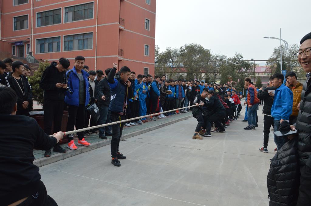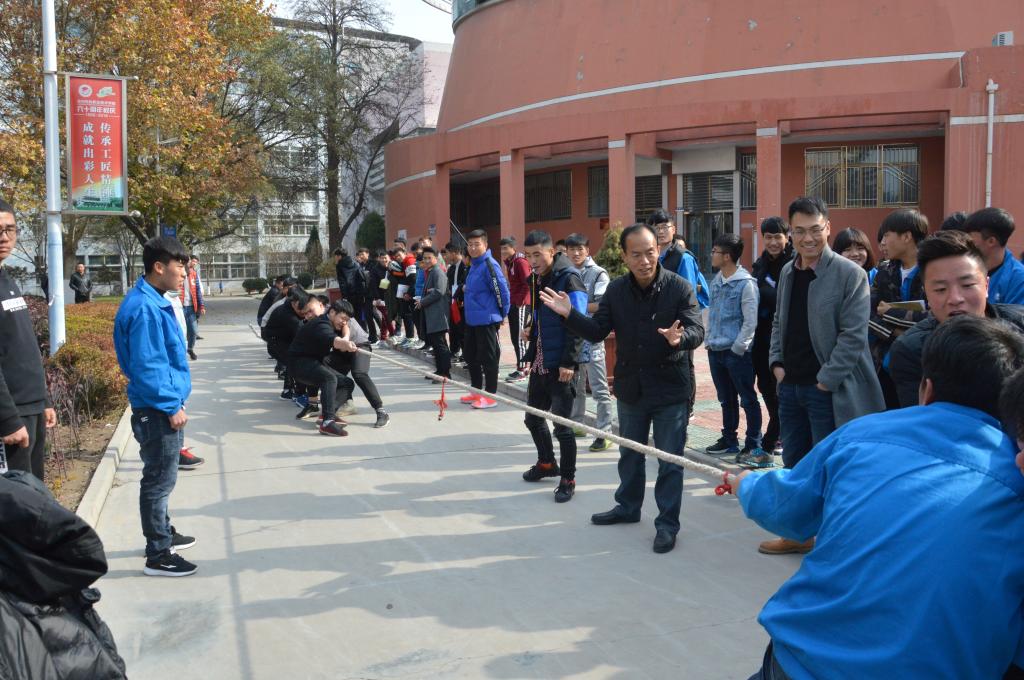 11月21日,世界杯8833300足球在图书馆前举行拔河比赛决赛,此次活动由大一各班员工参加,世界杯8833300足球辅导员党孝锋、团总支书记苟卫强亲临现场比赛。