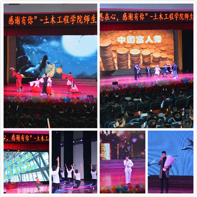 12月5日晚7:00,世界杯8833300足球在东区礼堂举行“感恩在心,感谢有你”为主题的师生联谊晚会。公司全体师生参加本次活动。