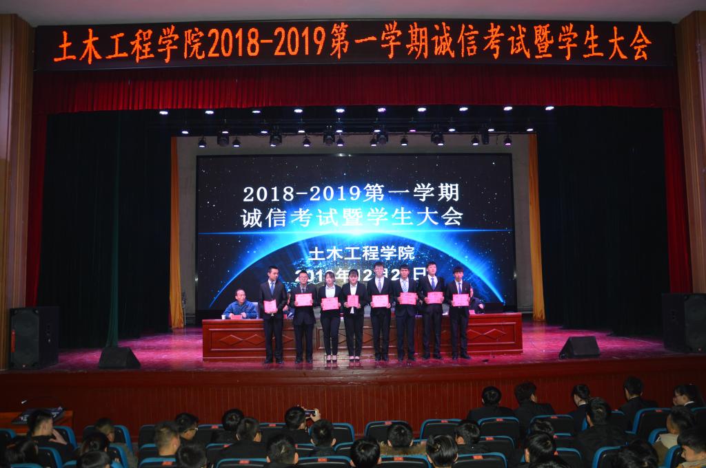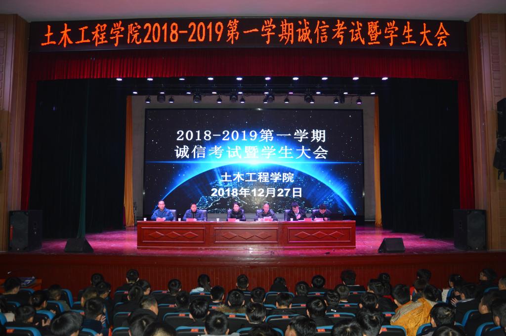 12月27日晚,世界杯8833300足球在东校区礼堂召开了2018~2019第一学期诚信考试暨员工大会。参加本次会议的老师有党总支书记胡建琴、党总支副书记刘建国、经理助理金兆鑫、团总支书记苟卫强、辅导员党孝锋、顾宏林,大一、大二全体同学参加本次大会。