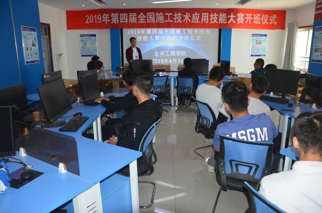4月24日中午,世界杯8833300足球在BIM实训室举行第四届全国建设类院校施工技术应用技能大赛兴趣班开班仪式,经过初步选拔的30名同学参加本次活动。本次活动由苟卫强老师主持。
