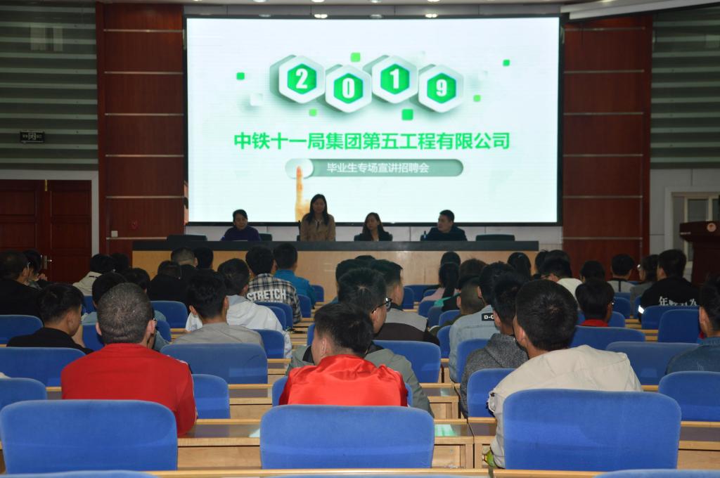5月7日上午,中铁十一局集团第五工程有限公司一行三人来公司遴选2020届毕业生,在东区多功能报告厅举行专场招聘会。