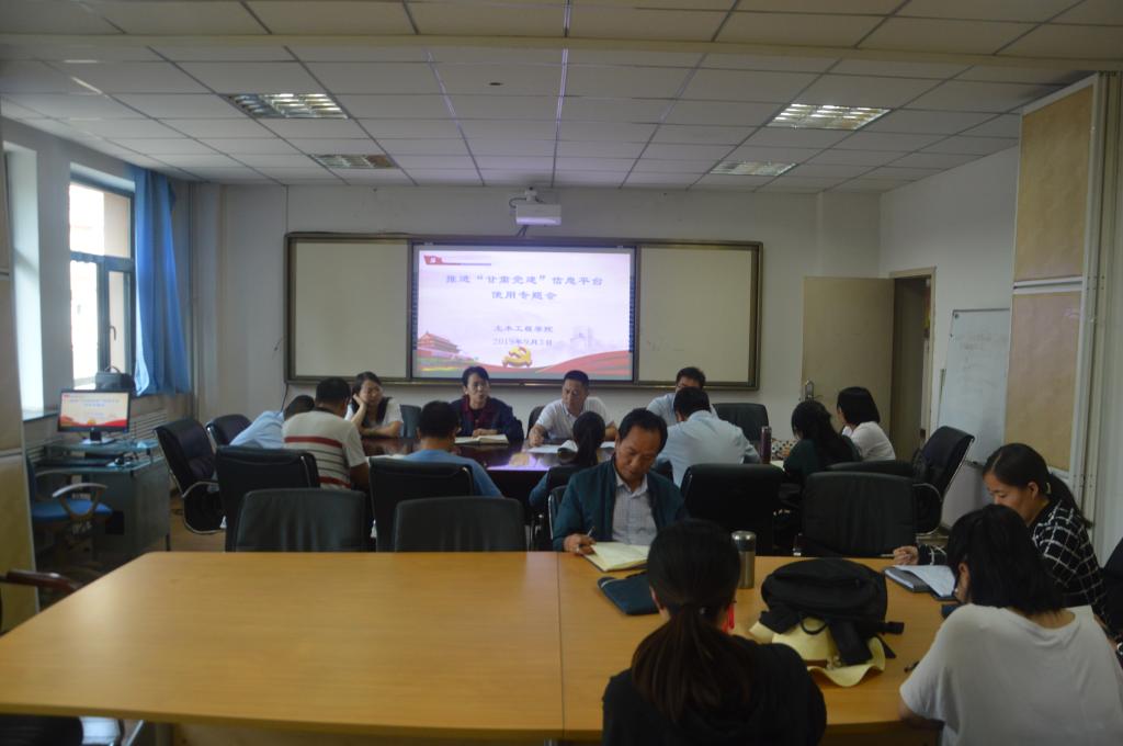 为贯彻落实省委组织部和公司关于“甘肃党建”信息化平台的使用的部署和要求,公司党总支高度重视此项工作,扎实安排部署,于9月2日在主教楼218召开专题会,会议由党总支书记主持,全体教职工老师参加了此次专题会。