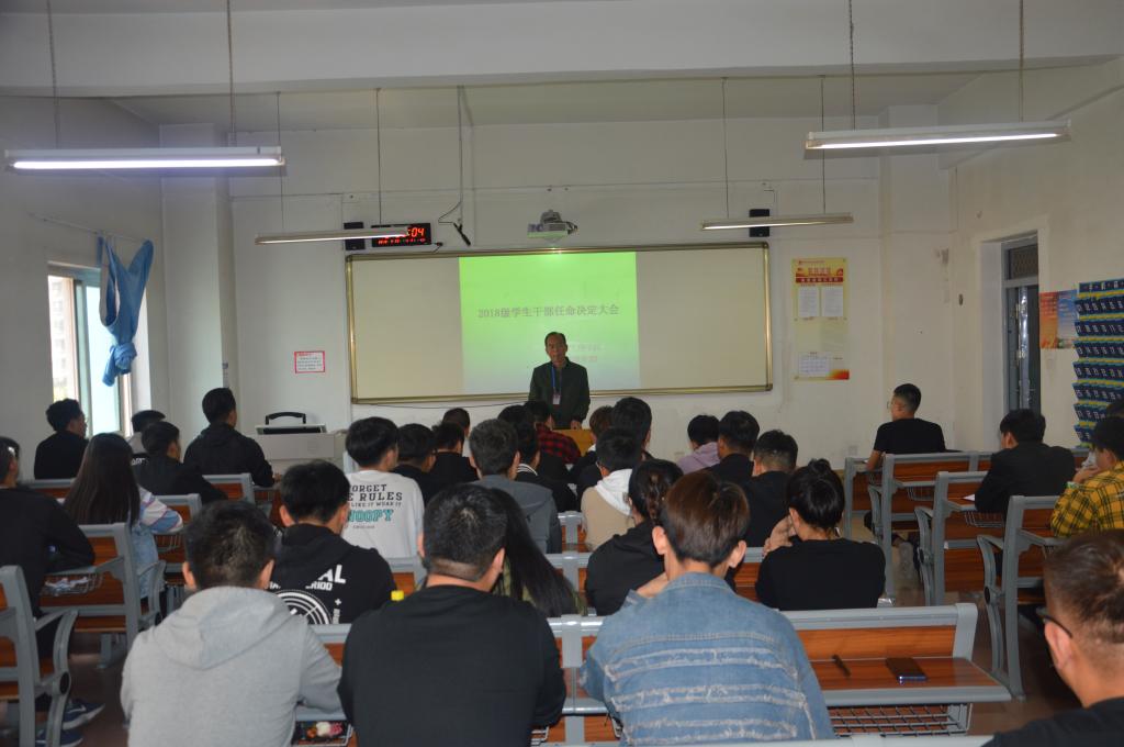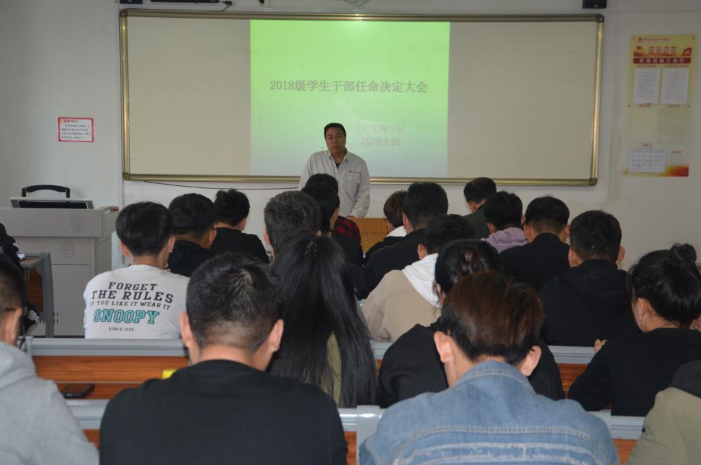 9月20日世界杯8833300足球在实训楼313教室进行员工干部任命大会。参加此次会议的有世界杯8833300足球辅导员、团总支书记以及全体员工干部。
