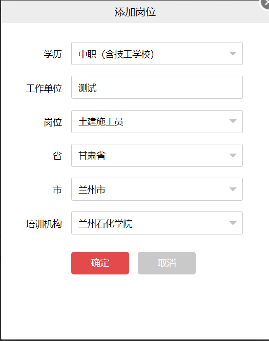 在个人详情页面的培训管理模块中,点击【添加培训报名】,在弹窗中添加需要报名的培训岗位信息、个人信息,选择兰州石化公司。