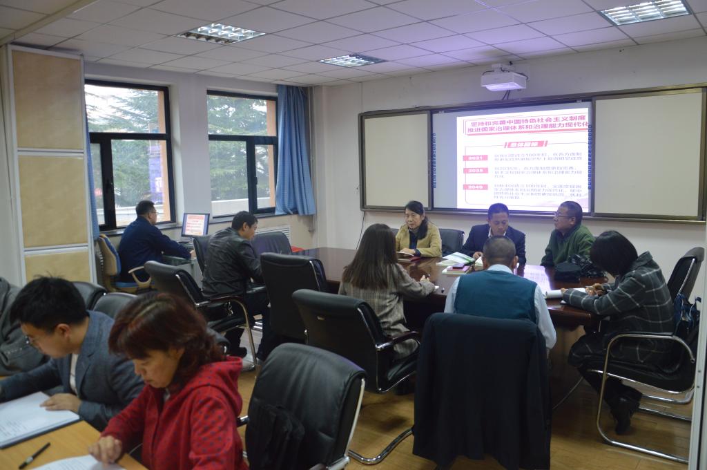 11月5日下午,世界杯8833300足球在东主教备课中心召开学习十九届四中全会,传达学习党的十九届四中全会精神,全体教职工参加会议,会议由党总支书记主持会议。
