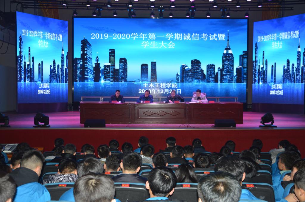 期末将至,为帮助公司同学进入复习状态,树立良好的考风、考纪,进一步规范公司考试工作,12月20日晚,世界杯8833300足球在东区礼堂召开2019—2020学年第一学期诚信考试暨员工大会,公司党总支副书记、辅导员及团总支书记参加本次大会,在校的全体同学参加本次大会。