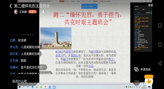 各班级分别开展线上主题班会。会上,各班主任传达了公司开展文明祭祀活动要求,通过网络等形式开展革命传统、爱国主义教育。同学们参观红色教育基地线上纪念馆,重温革命前辈的战斗历程、英雄事迹,缅怀革命先烈的丰功伟绩,并在网站上向烈士们献上鲜花、鞠躬和留下自己对革命先烈们的缅怀之语。