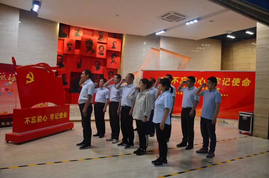 首先,在纪念馆大厅里,面对鲜红的党旗,教工党支部书记作为领誓人,带领支部新老党员一起高举右手,再次庄严宣誓。“我志愿加入中国共产党……随时准备为党和人民牺牲一切,永不叛党。”铿锵恢宏的誓词,强烈震撼着在场的每一位党员,一字一句,神圣而豪迈,体现了党员同志们对中国共产党的无限忠诚。