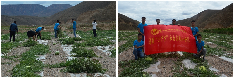 7月15日,小分队到建档立卡户大芦乡中砂沟村赵一鸣家进行走访,七月正逢农忙时节,得知赵一鸣父母亲正在地里忙着收西瓜,大家纷纷强烈要求要去地里帮农。经过半个小时的乘车颠簸,小分队来到了一望无际的西瓜地随即开始了摘瓜、除草工作。采摘过程中,赵一鸣父亲给大家讲解了如何辨识熟瓜和生瓜、如何进行除草等。当烈日随着时间的流逝悬挂在头顶时,虽然个个都汗流浃背,但队员们不喊一声累,不说一声苦,一起有说有笑地劳作,尽自所能及地干农活。