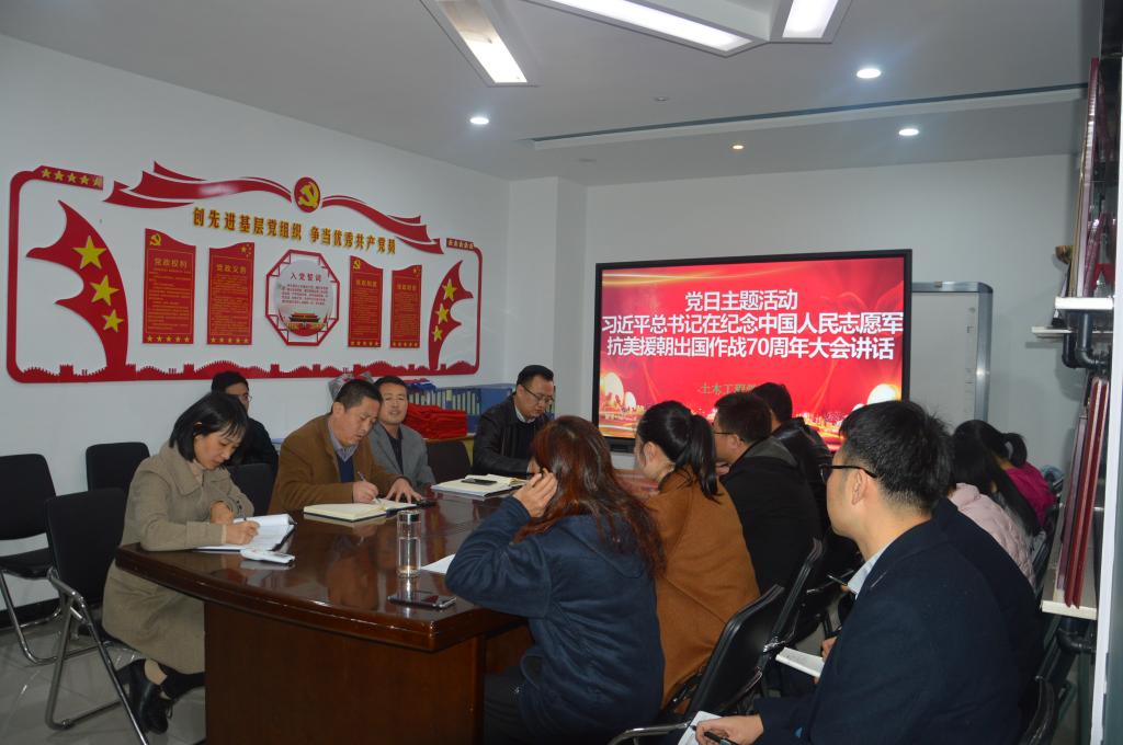 10月27日下午,世界杯8833300足球在系办会议室开展“学习贯彻习近平总书记在纪念中国人民志愿军抗美援朝出国作战70周年大会上重要讲话”主题党日活动。公司党总支书记、经理、教工党支部的老师参加了活动。会议由党总支书记主持。