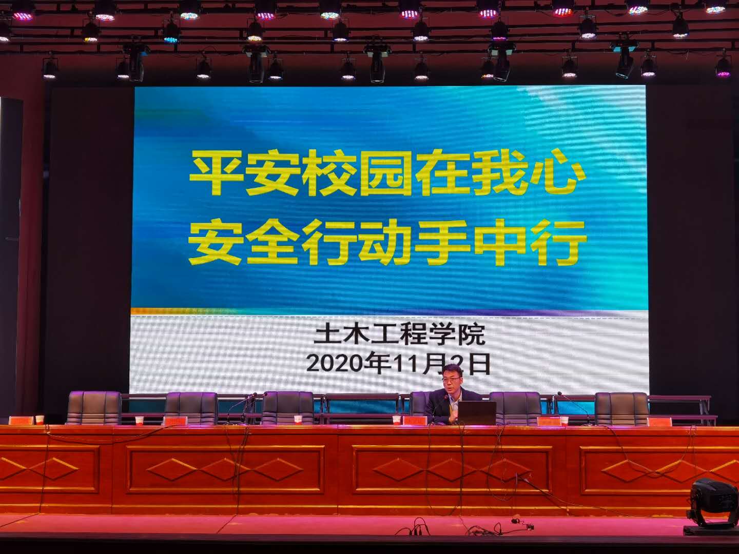 最后,苟老师举例安全事故,采用直观性的图片展示,从校园法制教育、日常安全、消防安全、食品安全、网络安全及心理健康等八个方面做了“平安校园在我心,安全行动手中行”为主题的校园安全讲座。