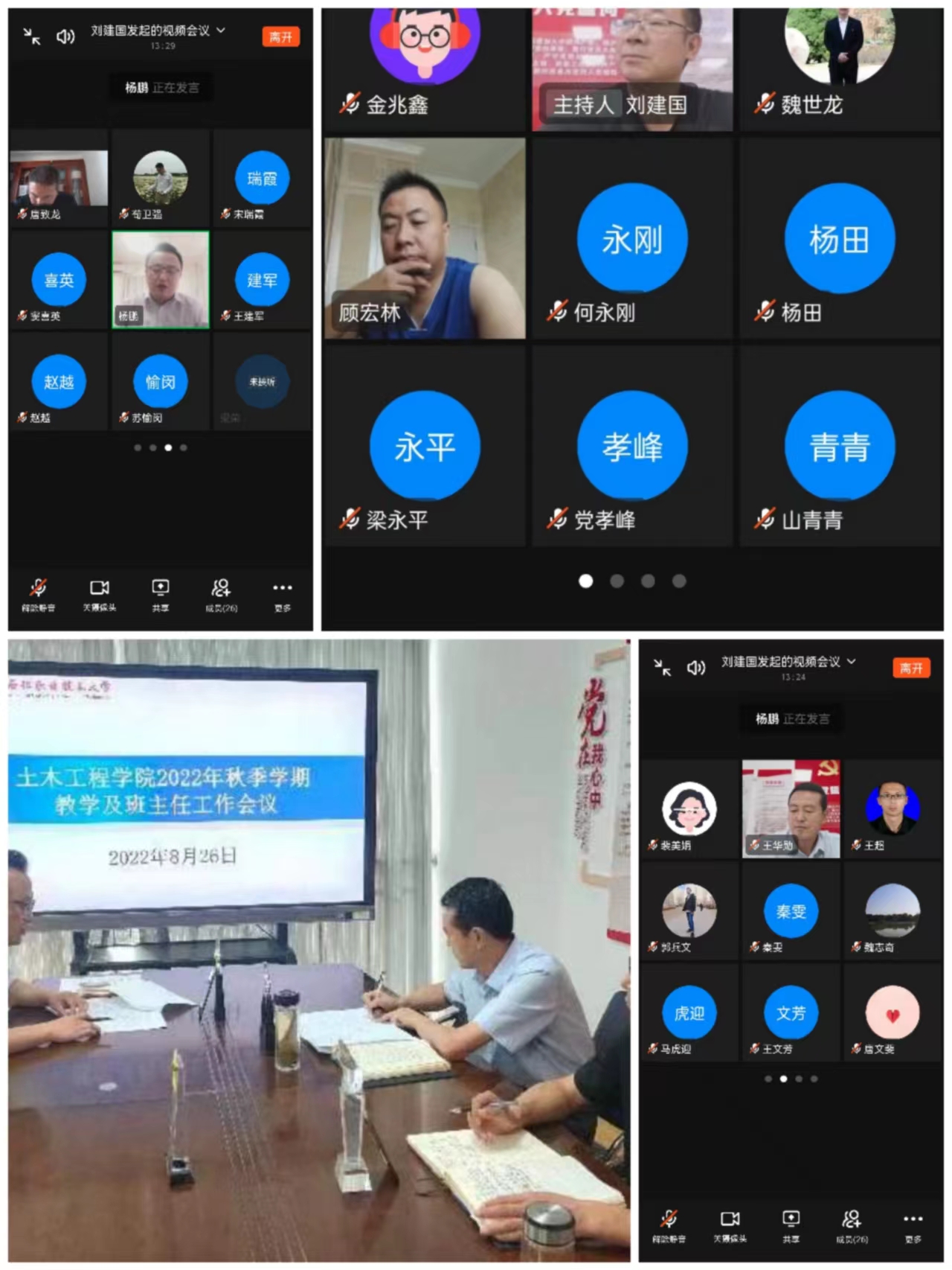 会上,公司教学工作负责人就近期开展线上教学的情况进行了安排部署并做了具体要求:一是各教研室要尽快把2021级、2022级新生线上教学开课落实到位,每位教师要按教务要求做好新学期线上线下的备课工作。二是授课教师要加强对员工的管理工作,配合落实线上教学安排,检查员工出勤情况,实时掌握线上教学的开展情况,切实加强监督和指导。三是要严格遵守教学纪律。在充分利用互联网信息化手段的同时,要严格规范教师行为,线上教学期间要做到严格遵守教学时间安排,言行规范、衣着得体、知识准确、信息发布严谨。随后,公司员工管理负责人传达了公司员工工作会议精神,就公司如何落实疫情防控措施、做好员工管理工作提出具体要求:一是要做好线上授课前的准备工作,认真检查员工线上听课、出勤情况,做好员工的动态管理工作,营造良好的院风学风;二是要加强员工的思想政治教育,做好疫情防控下的舆论引导,积极宣传正能量,并持续关注、追踪员工居家期间的思想、学习、心理、安全等情况,精准掌握员工的动态信息,结合疫情和身边的典型案例,认真准备好开学第一课;三是要抓好工作落实,对于公司及公司安排的工作,要积极回应、认真解决、责任到人。班主任纷纷表示将全力支持和配合公司的员工工作,保证任务的圆满完成。