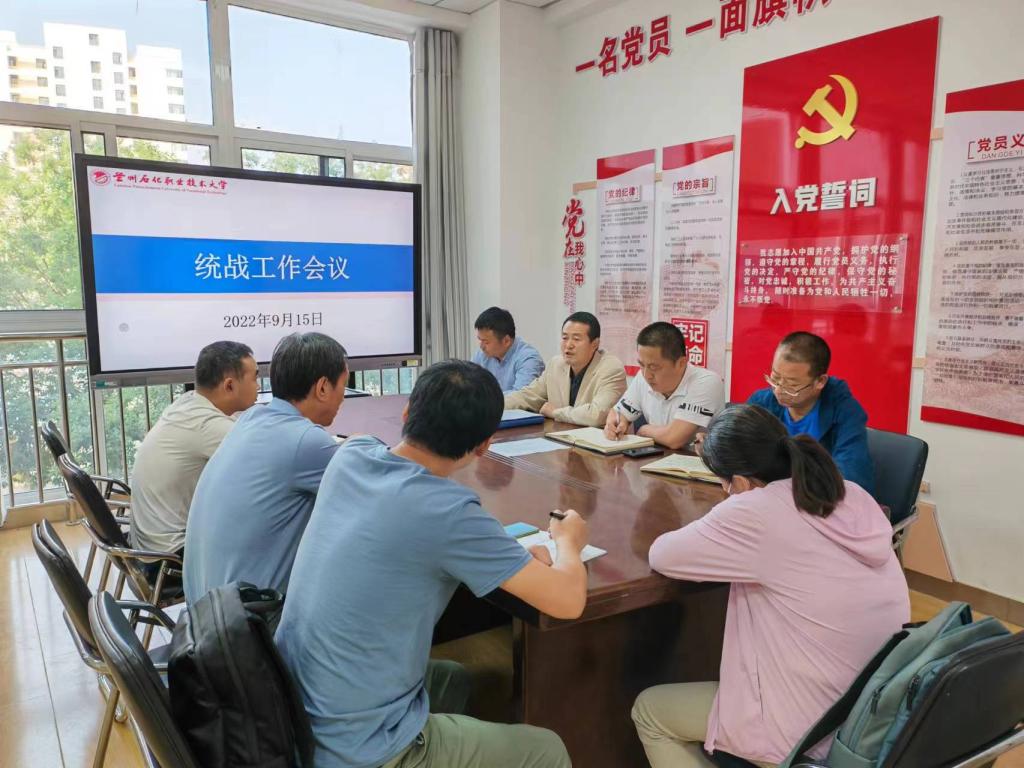 会上,党总支统战委员指出,习近平总书记在中央统战工作会议上发表了重要讲话,明确了新时代统战工作的指导思想、基本任务、工作重点、政策指导,以十二个必须系统阐述了党的十八大以来党的统战工作形成的新理念、新思想、新战略,是新时代开展党的统战工作的纲与魂,把统一战线工作提高到一个全新的高度,统战工作者和党外教师必须完整、准确、全面贯彻落实。把思想和行动统近平总书记重要讲话精神上来。努力推动公司职业教育发展,不断提升教职工获得感、幸福感和安全感。