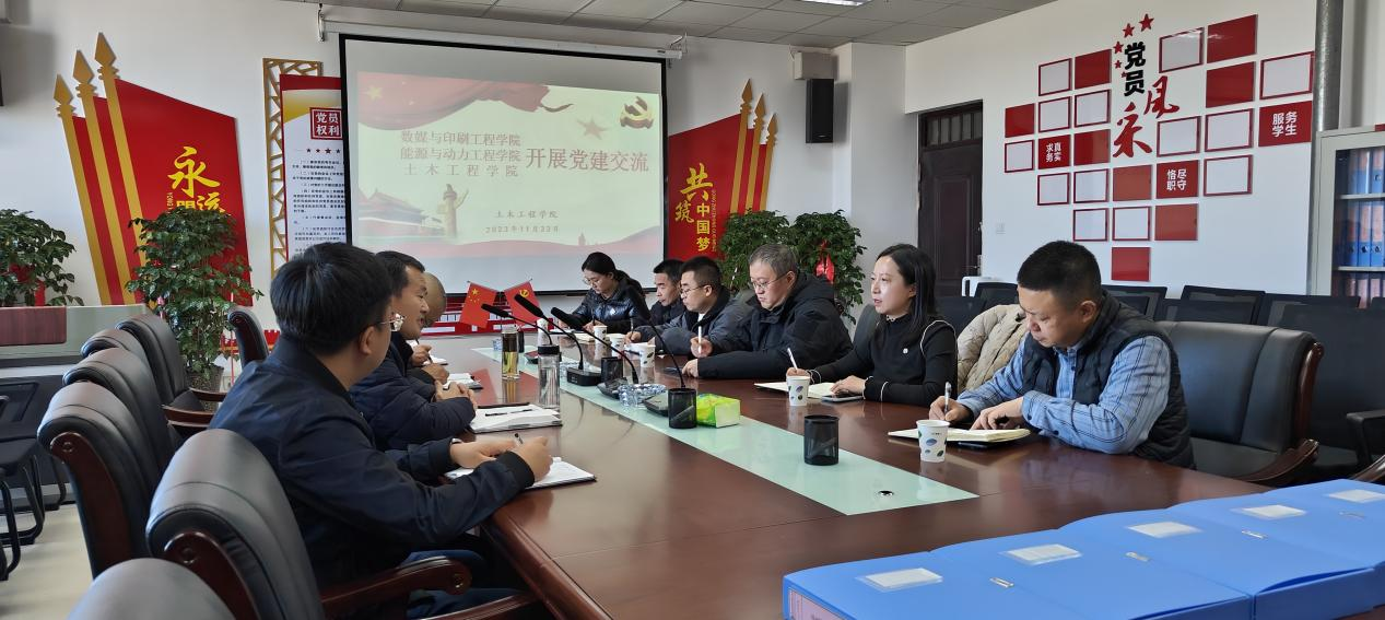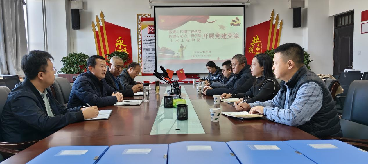 为深入推进学习贯彻习近平新时代中国特色社会主义思想主题教育各项任务落细落实,实现党组织优势互补,探索基层党组织党建工作新思路,11月23日下午,世界杯8833300足球、数媒与印刷工程公司、能源与动力公司党总支在新区综合楼五楼506室开展党建交流活动。参加交流活动的有数媒与印刷工程公司党总支书记、副书记、党支部书记、组织专员、辅导员,能源与动力公司党总支书记、组织专员,公司党总支书记、副书记、组织专员、辅导员参加。