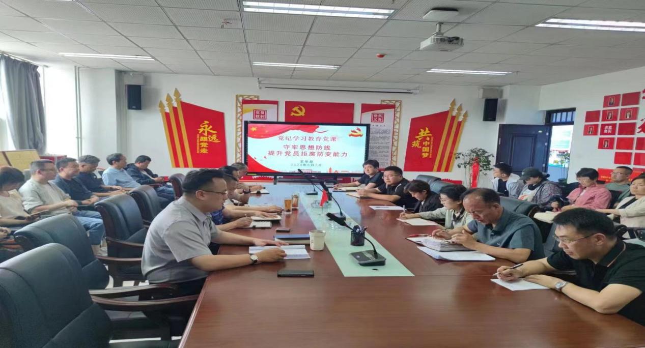 公司教工党支部书记以《学纪、知纪、明纪、守纪,推动党纪学习教育走深走实》为题,强调了开展党纪学习教育的重要性,要求全体党员要以实促学、以案促学、以训促学、以检促省,确保党纪学习教育高质高效。