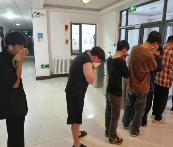 随着一阵急促的警报声在2号公寓楼内响起,应急疏散演练正式拉开帷幕。全体师生迅速进入应急状态,各楼层、各班级负责人立即到达指定岗位,引导员工按照预定的疏散路线有序撤离。在疏散过程中,同学们弯腰低姿,用湿毛巾捂住口鼻,沿着安全通道快速、有序地向操场等指定安全区域疏散。整个过程紧张而不慌乱,师生们动作迅速、配合默契,仅用时3分20秒,全体人员安全、高效地完成了疏散任务。