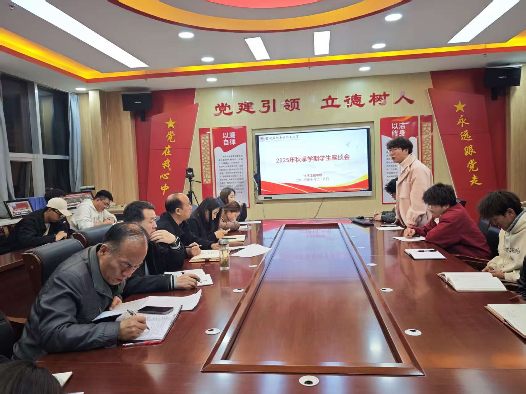 公司员工工作负责人就员工代表提出的有关问题进行了明确的答复,确保员工的诉求得到有效反馈,最大限度地为员工创造更好的学习和生活环境。辅导员从员工安全、宿舍管理等角度对同学们进行了指导,提醒同学们做好时间管理,平衡学习与生活。